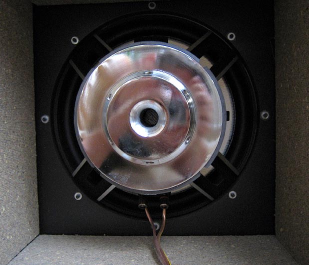 Bild 1: DiSub 310 von seiner "offenen Seite" - die Wände sind mit Dämmplatten gegen Flatterechos beklebt