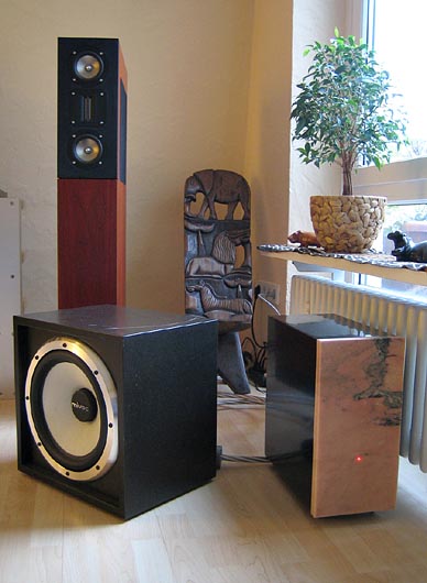 Noch einmal konkret zum DiSub 310: Der spielt schnell, sehr schnell; absolut präzise und pulvertrocken. Einzig die Pegelfestigkeit des Konzepts ist begrenzt: Bei höheren Pegeln (die VOX 200 ist beispielsweise noch nicht ausgereizt) schlägt das eigentlich sehr langhubige Mivoc Chassis (+/- 10 mm) schon an. Es ist ja auch kein dämpfemdes Luftvolumen vorhanden. Hinsichtlich typischer Hifi-Pegeln ist das allerdings eine zu verschmerzende Einschränkung. Erst im Heimkino oder Disco-Keller würde man schnell an die Grenzen des DiSub 310 stossen. Aber wer würde einen derartigen Highend-Subwoofer auch schon mit solch grobschlächtigen Aufgaben betrauen?