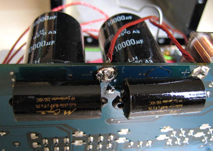 Bild 1 und 2: Noch mehr DIY am Thommessen Modul - Bypass-Kondensatoren und RDC-Kegel als Gehäusefüsse