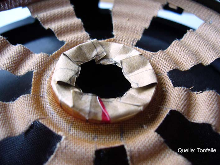 Bild 4: Das verbleibende Stück des Schwingspulenträgers wird längs in mehrere Segmente eingeschnitten und dann zur Basis für das Gewicht gefalten.