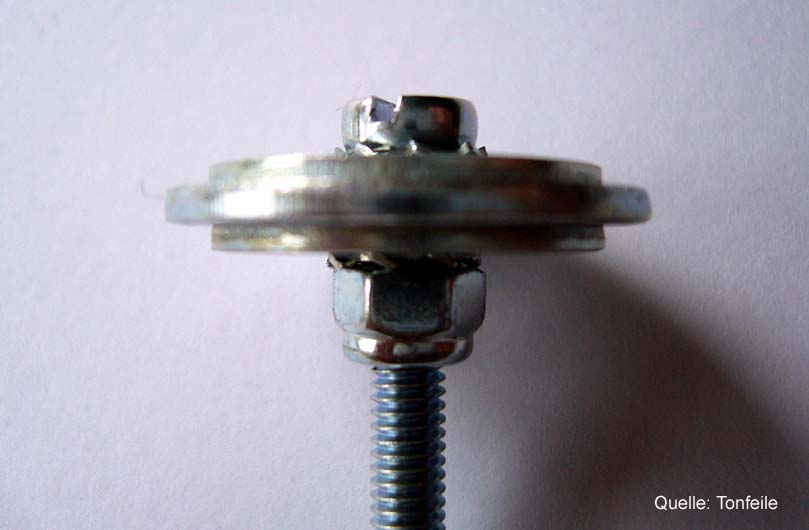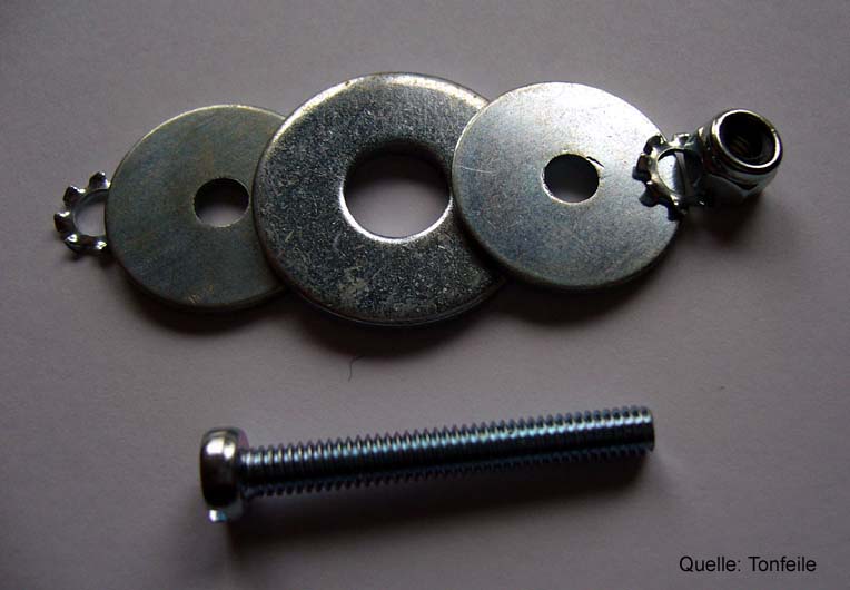 Bild 5: Das Gewicht besteht aus einer M4 Maschinenschraube, Beilagscheiben, Sperrringen und einer selbstsichernden Mutter.