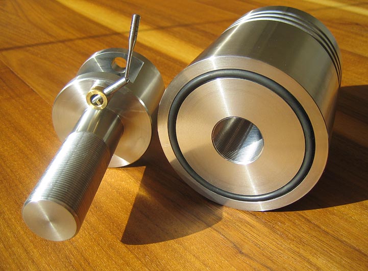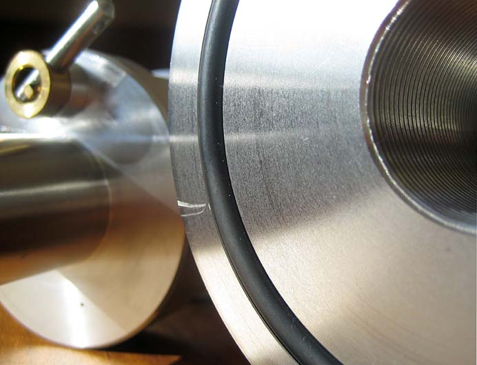 Der unten eingedrehte Radius in Bild 1 dient - wie bei der Tonarmbasis auch - dem Einfügen eines O-Rings. Dadurch steht der Mitlaufbesen verrutschfest und kippelt nicht auf unebenen Untergrund - wie etwa einer gebrochenen Schieferplatte.