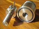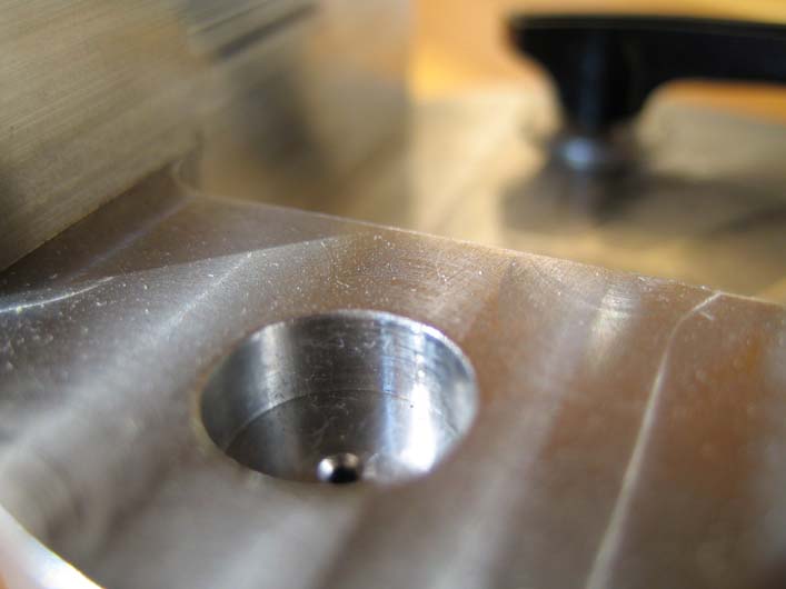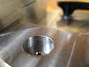 Bild 1: Magnetpfanne im Lagerbock. Die kleine Bohrung dient der Entlüftung beim spielfreien Einschieben des Magneten.