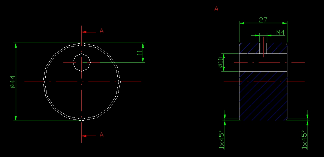 Das Mass zur Anbindung an das Tonarmrohr (ohne Bild) wurde so gewählt, dass eine Pressverbindung mit der Holzrohr-Bohrung entsteht. Also: Entweder die Holzrohre zuerst fertigen lassen oder an dieser Stelle lieber ein wenig Übermass kalkulieren und die Bohrung des Holzrohres nachbearbeiten. Die Längsdurchbohrung dient der internen Kabelführung. Zusammen mit der Headshell ist es das einzige Bauteil aus Aluminium. Alle anderen Baugruppen wurden (cost no object) aus Edelstahl gefertigt. Aluminium, Kupfer, Messing oder Holz sind zwar gerade bei Plattenspielern sehr in Mode - was ausser Alu sicher auch resonanz-technisch Sinn ergibt - aber Edelstahl ist diesbezüglich sicher nicht schlechter, hat den Vorteil nicht zu korrodieren, ist aber deutlich schwerer zu bearbeiten.