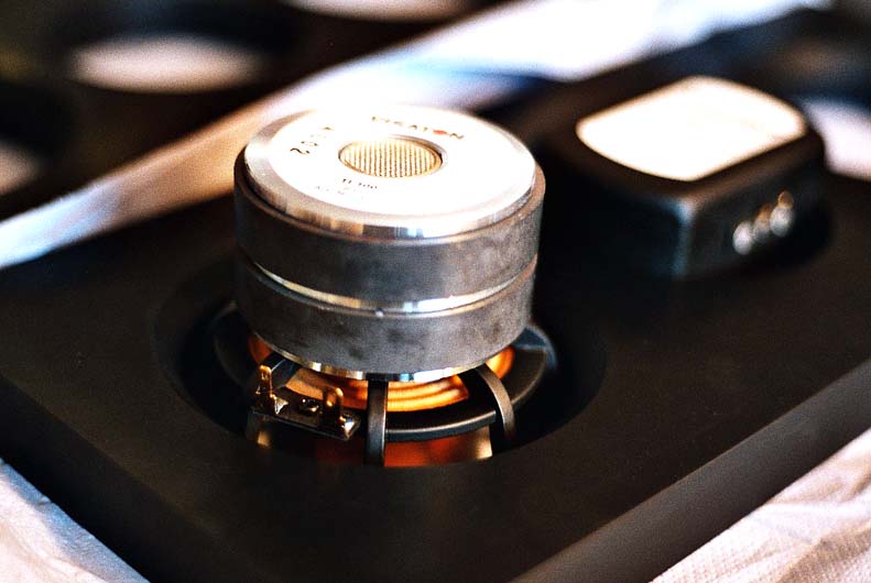 Die asymmetrische Mittel-Hochtonkammer (Bild 3) ist zu den Chassis hin nur mit Filz beklebt. Die Stahlkugelmatte ist von der anderen Seite aufgebracht.