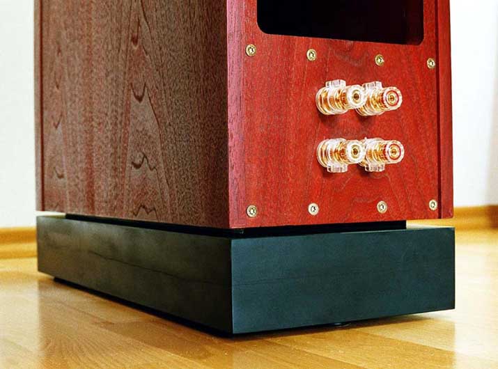 Dank der Versteifung, Dämmung und nicht zuletzt der Aluminiumschallwände bringt ein Lautsprecher mit 48 kg schon deutlich mehr auf die Waage als eine Standard VOX 200 mit ca. 20 kg. Zusammen mit dem Schiefersockel sind es dann sogar schon ca. 61 kg. Der Sockel sorgt zudem dafür, dass sie Kippstabiltät zunimmt. Wer auf einen entsprechend schweren Fuss verzichten möchte, sollte aufgrund der geringen Breite und des hohen Schwerpunktes zumindest für einen breiter auskragenden Sockel sorgen (was in diesem Fall allerdings die Gesamtoptik gestört hätte). Beim Lautsprecher-Rücken zur Identifizierung der optimalen Aufstellung (unbedingt beachten!) zahlen sich die Antispikes unerwartet aus: Im Vergleich zur Aufstellung auf Spikes lässt sich insbesondere auf Parkett oder Laminat auch mit einer Person der Lautsprecher problemlos bewegen - nach dem "Heimwuchten" also kein weiteres Schweissvergiessen mehr!
