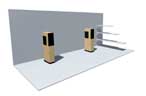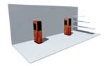 Bevor auf den nächsten Seiten nun die Konstruktion und der Aufbau dokumentiert wird, nun noch 2 3D-Bilder meines zum Lautsprecher-Designer avancierten Architekten "Claus". Der überzeugte mich mit diesen Bildern, kein lackiertes oder mit Aluminiumwellen-Folie beschichtetes Gehäuse zu realisieren, sondern etwas "Lebendiges" mit Holzfunier. Links ist die Version in Ahorn und rechts die in Mahaghoni zu sehen. Beim Furnierhandel hat schliesslich französicher Nussbaum das Rennen gemacht, der dann noch rötlich gebeizt wurde.