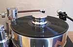 Nachdem ich mit einer Schieferbasis und Tellerauflage aus Schiefer bemerkenswerte Ergebnisse an meinem Alu-Dreher Fat Bob S erzielt habe, wollte ich auch den Auswirkungen von unterschiedlichen Auflagegewichten nachgehen. Gerade bei dünnen und verwellten Platten ist schon das Abspielen mit dem beiliegenden Original-Transrotor-Auflagegewicht (ebenfalls aus polierten Alu ...natürlich - s. Bild 1 unten) geringfügig angenehmer als ohne Gewicht. Weil als einfaches Drehteil leicht herzustellen, findet man auch etliche nur erdenkliche Auflagegewichte am Markt. Dass das ein oder andere Kupfer-, Edelstahl-, Kohlefaser,- oder auch bedämpftes Zylinderrollen-Gewicht evtl. Vorteile gegenüber dem durch einen Gummi-O-Ring bedämpfte Alu-Gewicht haben würde, ist zu erwarten. Wirkich konsequent erachte ich allderings die Möglichkeit ein Gewicht gegen die Platte zu verspannen. Leider besitzt der Zapfen des Transrotor kein Gewinde für ein entsprechendes verschraubbares Gewicht. Mein Münchner Lieblingshändler machte mich auf eine interessante Alternative des deutschen Analogspezialisten Clearaudio aufmerksam: Seal (Bild 2 unten).