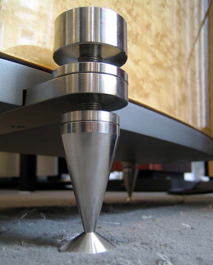 Weitere Einigkeit herrscht bei der Verwendung eines Bi-Wiring-Terminals mit WBT-Klemmen und einer Ankoppelung an den Boden über Spikes. Letzteres muss nicht bei jedem Boden der Weisheit letzter Schluss sein. Aber das ist eine andere Geschichte - s.a. Höreindrücke - Basen und Füsse.