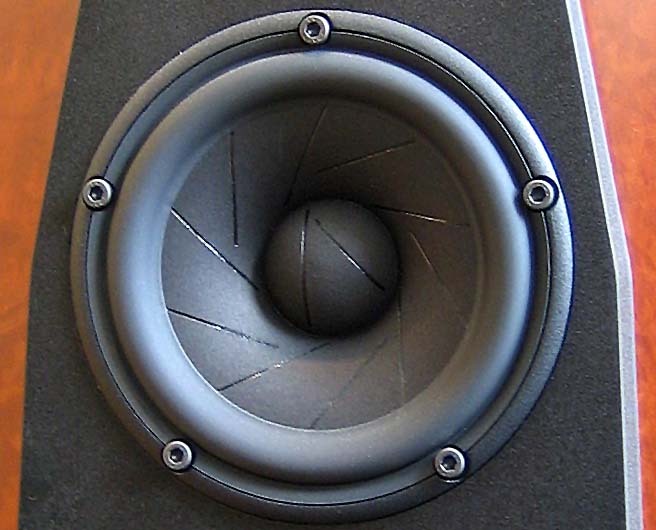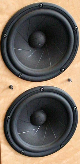 Beide Modelle nutzen die berühmten Chassis mit den geschlitzen Papierkonussen des dänischen Herstellers Scan-Speak. Sicher keine schlechte Wahl. Die Qualitäten dieser Chassis sind unbestritten, und zudem sind deren Papiermembranen leichter zu beschalten als die ebenfalls populären Keramik- oder sonstigen Hartmembrankonusse. Zum einen ist Papier hinsichtlich seiner Eigendämpfung das bessere Chassismaterial, als die zu hartem Eigenklang neigende Keramik. Letztere muss zudem noch stärker über die Frequenzweiche entzerrt werden, damit es nicht auch noch entsetzlich klirrt. Zum anderen soll die asymmetrische Schlitzung der Membranen (Bild 2 unten) das Resonanzverhalten weiter verbessern. Ein Blick auf die (ungefilteten) Frequenzschriebe auf der Scan Speak Seite weist denn auch alle verwendeten Chassis als sehr gutmütige Gesellen aus, die leicht zu "erziehen" sein sollten.