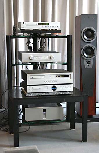 Bild 1: Gesamte Abhörkette - der Arcam Player (oben) kam nicht zum Einsatz.
