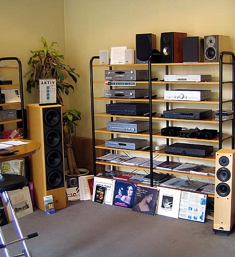 Die Abhörkette des Münchner Shops stand in deren recht grossen Vorführraum. Mit einem schweren Vorhang hinter den Lautsprechern und dem Teppichboden einerseits, und einer grossen seitlichen Glasfront andererseits, ist der Raum durchschnittlich bedämpft.