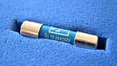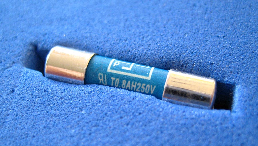 Feinsicherung mit Kontaktkappen aus Kupfer, vergoldet. Hochwertiger Schmelzleiter aus Reinkupfer. Gehäuse aus resonanzoptimiertem Keramikrohr mit Löschmittelfüllung. 10,50 EUR für die angeblich verbesserte Version 2. Erste Hörversuche wurden mit der gleich aussehenden Version 1 für 7 EUR durchgeführt.