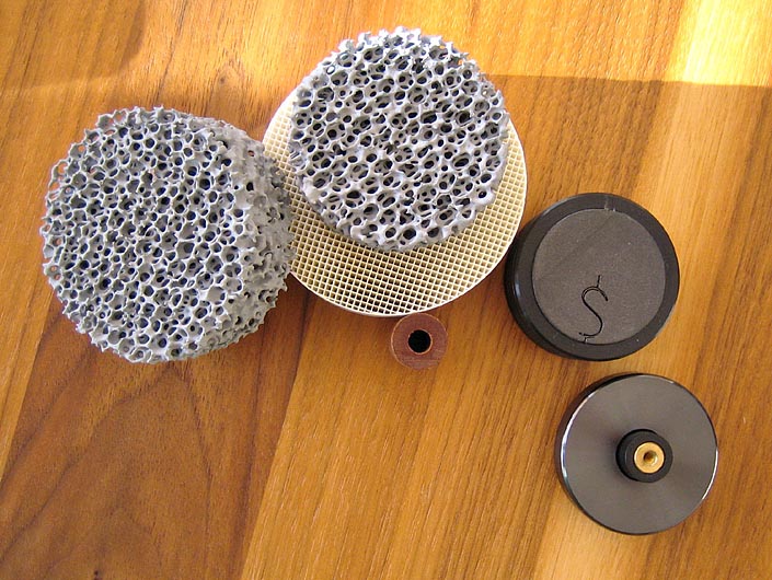 Durch die Highend 2007 bin ich neugierig auf Untersteller aus Schaumkeramik geworden. Leider waren auch auf Anfrage beim Hifi-Basen-Hersteller keine derartigen Gerätefüsse zu bekommen. An mangelnder klangfördernder Wirkung kann es indes nicht gelegen haben, soviel darf schon verraten werden. An der Preisgestaltung dieses Hifi-Zubehörs dann eventuell schon: Denn Giessfilter aus Schaumkeramik (Anwendungsgebiete sind nämlich neben dem Hifiuntersteller das Filtern von Stahlguss) gibt es je nach Material, Abmessung und Ausführung zwischen 2 und 12 EUR für gerätetaugliche 3 Stück - da ist Luft für einige x-tausend Prozent Marge... ...oder eben für Einsparpotenzial für den DIY´ler.