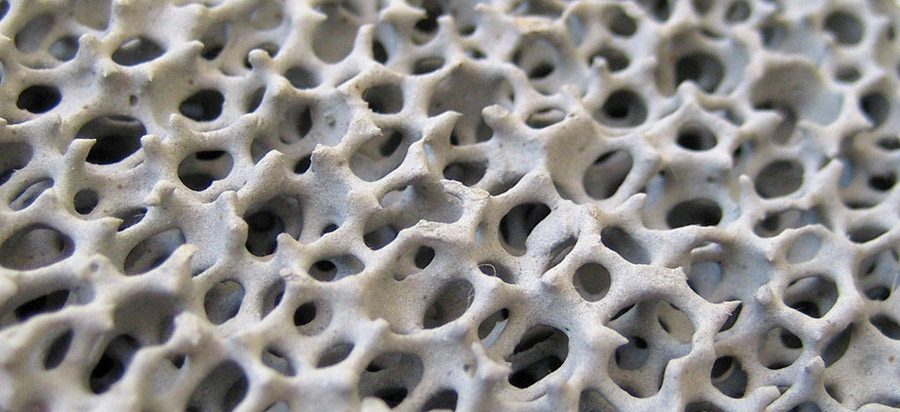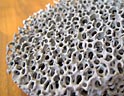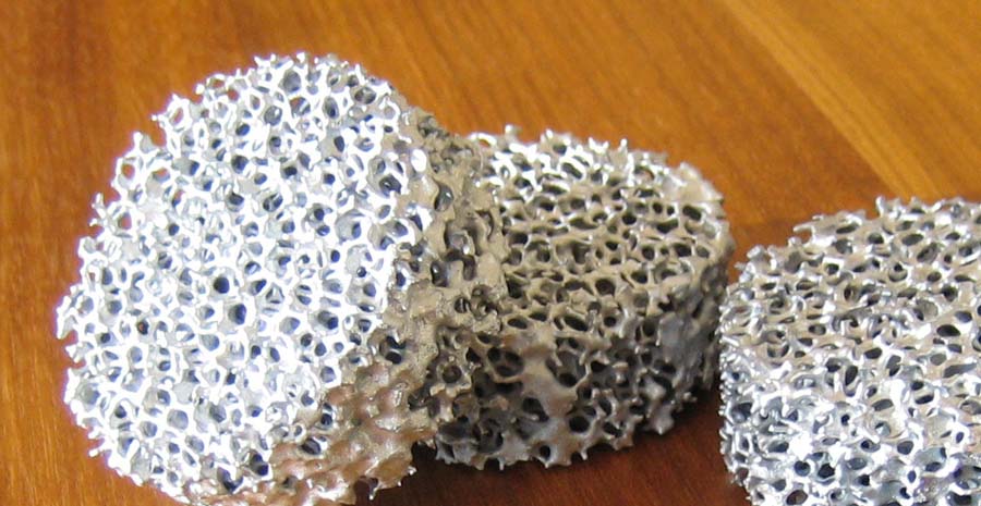 Bild 1 bis 4: Schaumkeramikfilter mit durchgängigen Kanälen und amorpher Porösität