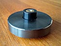 Bild 1: SSC-Puck Unterseite mit Filzfuss (links) und Oberseite mit Gewindebuchse zur festen Verschraubung mit dem Geräteboden (rechts)