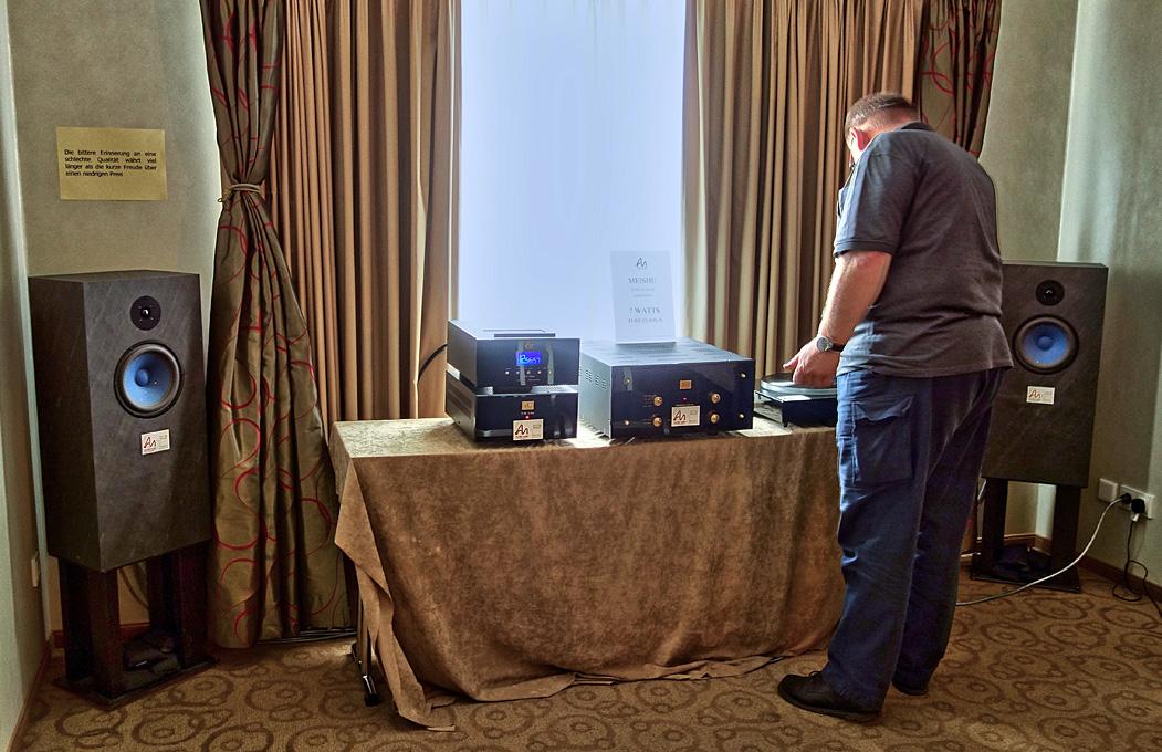 Das ist auch notwendig; denn der Vollverstärker Meishu mit zwei 300B Trioden in ClassA Betrieb schafft maximal 7 Watt. Wie hoch hier bereits das Klirrniveau liegt war nicht heraus zu finden. Aber vielleicht zu hören?