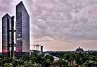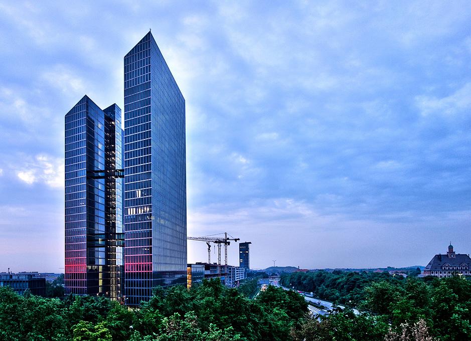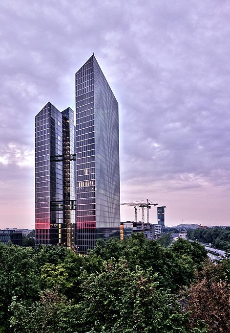 Bild 1 bis 3: Auch der Blick hinter die Hifi-Anlagen aus den Fenstern der Vorführräume lohnte sich je nach Witterung. Hier zur blauen Stunde, die Dank Fotonachbearbeitung auch andersfarbig leuchten kann.