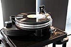 So findet man am Omega Point 5 auch einen resonanzarmen Materialmix aus bewusst kleinflächiger, halbkreisförmiger Hartholzzarge, POM-Füssen und einem bedämpften Plattenteller aus einer Alulegierung. Der Antrieb ist, wie schon bei den Nottinghams, über einen besonders drehmomentschwachen Motor, einen grossen Pully und einem dicken Rundriemen gelöst. Abenteuerilch, aber ebenso seit Jahren erprobt ist das bewusste Bremsen des Tellers über ein Gummi, so dass der schwache Motor den manuell in Drehung versetzten Teller geradeso auf Drehzahl halten kann. Alles mit dem Ziel einer möglichst störungs- und resoanzarmen Abtastung. Die übernahm auf der Messe der ebenfalls neue Fletcher Zero Tonarm und das auch hier zum Einsatz kommende Lyro Delos MC System. Leider gibt es das ganze nicht zum 1.000 EUR Sparpaket wie damals den formidablen und zu UNrecht unterschätzen Horizon. In England werden für den Omega Point 5 3.700 Pfund und für den Zero Tonarm 2.000 Pfund aufgerufen. Das Lyra kosten in Deutschland ca. 1.100 EUR. Andererseits dürften diese Beträge einen potenziellen Transrotor-Kunden nicht schrecken...