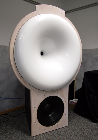 Der ein oder andere Messebesucher fand unflätige optische Vergleiche mit sanitären Anlagen für den grossen Horntrichter. Aber das ist wohl Geschmackssache - man muss wohl die Optik und den Sound von Hörner mögen, um mit Ihnen klar zukommen. Ich habe da eher Probleme mit Zweiteren, wie bereits in einigen Höreindrücken von populären Hörner auf der High End Messe beschrieben. Mal sehen wie sich dieses hier macht.