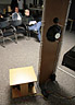 Bei den weiteren Hörbeispielen waren auch einige mir gut bekannte Titel dabei, die allesamt bei der Umschaltung von "unkorrigiert" zu "korrigiert" die nahezu unglaubliche Wirkung des AudioVolvers demonstrierten. Dire Straits "You and Your Friend" wurde auch "unkorrigiert" ansprechend wiedergegeben. Sehr breitbandig, mit trockenem Bass und einem insgesamt sehr luftigen Klangbild - die beiden HobbyHifi Bauvorschläge waren also trotz ihrer einfachen Chassis auch so von sehr ansprechender Qualität. Aber bevor ich mir Gedanken darüber machen konnte, was meine heimische Anlage noch so alles besser kann, schaltete Herr Oehlrich auch schon wieder die Korrektur dazu. Ok, ich wiederhole mich jetzt: Alles spielte auf Knopfdruck nun aus einem Guss. Insbesondere das Timing geriet nun perfekt und das Klangbild löste sich vollends von den Lautsprechern - mit geschlossenen Augen kann sicher die Instrumente und Stimmen gemäss der Abstimmung des Toningenieurs zuordnen. Aber wo standen nochmal die Lautsprecher? Keine Ahnung, da muss man die Augen schon wieder öffnen. Beeindruckend!