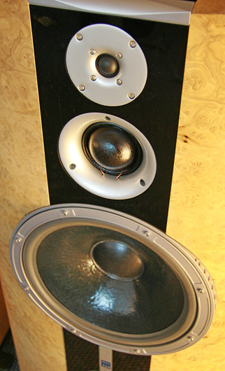 Die neue Serie hört auf die Bezeichnung S71. Gespielt wurde das 3-Wege-Standlautsprecher-Modell, dass bereits zur freundlichen UVP von 2.000 EUR pro Paar angeboten wird. Zudem sind ein 2-Wege Kompaktmodell für 1.000 EUR pro Paar und ein passender Center im Angebot. Allen gemein ist der aus den highendigen TAD und EX-Modellen bekannte Koax, der in den S71-Modellen allerdings in einer abgespeckten Version zum Einsatz kommt. Berylliumkalotten und Magnesiumkonusse wie in den Topmodellen gibt es zu den aufgerufenen Kursen natürlich nicht, aber die Titankalotte macht im Zentrum der 13er Aramidfaser-Membran (Bild 3) auch eine sehr gute Figur.