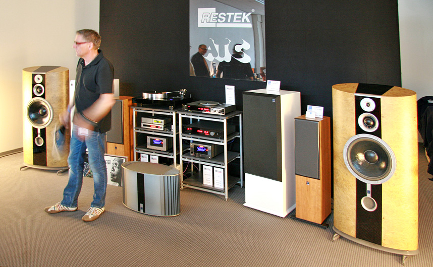 Tja, so viele "Auszeichnungen" habe ich bei noch keiner Highend vergeben können. Die grossen Aktivlautsprecher mit dem sperrigen Namen EL 150 A FF spielten an der Restek-Elektronik hoch dynamisch, breitbandig und ohne erkennbare Fehler auf. Anteil an der livehaftigen Vorstellung insbesondere alter Vinylschätzchen hatte aber sicher auch der Topvinyldreher von Project mit dem Highend Abtaster A90 von Ortofon - eine tolle Kette.