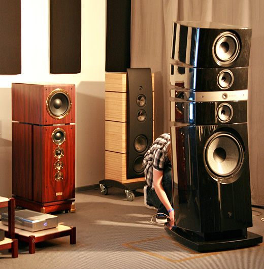 Das Thema Lautsprecher-Kabel-Entkopplung ist offenbar immer noch nicht tot zu kriegen (Bild 5) - s.a. Basen und Füsse und bereits auf der High End 2006 erstmals gesichtet: Sonus Faber. Ich werte obigen lustigen Aussteller mal als augenzwinkernden Beitrag und erspare mir eine weitere Kommentierung.