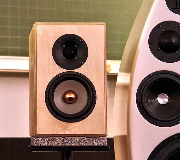 Wer also lieber sich, als seiner besseren Hälfte, etwas Gutes tun will, benötigt nicht viel mehr als die beiden Chassis von Gradient und Monacor (zusammen ca. 40 EUR), wenige Weichenbauteile, ein paar Arbeitsplattenzuschnitte aus dem Baumarkt nebenan, sowie ein paar Teppichreste. Fertig ist die highfidele Kompaktbox. Dass diese mehr als nur ein preiswertes Übungsprojekt ist, demonstrierte sie in der Vorführung - auch im Vergleich zur KEF Q300. Sie erreichte zwar nicht ganz die Auflösung und Präzision der Bühnendarstellung wie die KEF, war aber weit davon entfernt sich von dieser deklassieren zu lassen. Mit verantwortlich hierfür sind die ausgewogene Abstimmung, das zwar einfache, aber akustisch vorteilhafte Gehäuse und nicht zuletzt die beiden Chassis, die trotz ihres vergleichsweise geringen Preises schon Einiges zu bieten haben:Der für gerade einmal 17 EUR erstehbare Gradient W130AL8 besitzt zwar nur einen Blechkorb, glänzt aber schon mit einer 13er Alumembran mit lustig geformter Staubschutzkalotte und magnetischer Schirmung. Die 25er Seidenkalotte Monacor DT-25N mit intergrierter Schallführung sieht zwar unscheinbar aus, bietet für ihre ca. 23 EUR aber bereits einen effektiven Neodym Magnet Antrieb und ist tief ankoppelbar. Da neben der tiefen Grenzfrequenz der Einbaudurchmesser klein ist, drängen sich zudem Versuche in echter D`Appolito Anordnung geradezu auf.