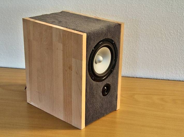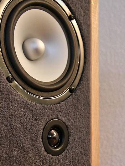 Bild 1: Preisgünstige 2-Wege-Lautsprecher mit einfach nachzubauendem Gehäuse aus Baumarktplatten und Teppichresten.