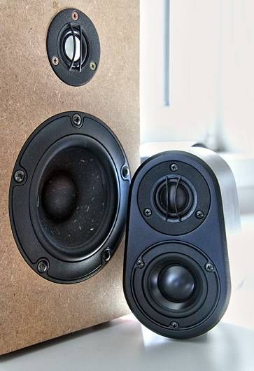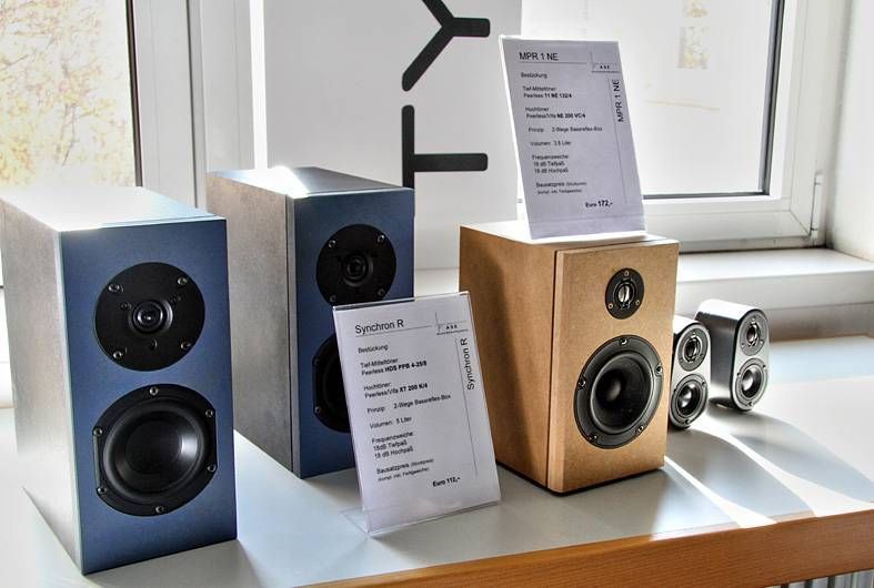 Bild 1: Synchron-R (links) mit 11cm Peerless Tiefmitteltöner und 19mm Vifa Ringradiator. Etwas edler und teurer ist die MPR1 NE mit Chassis aus Vifas NE-Serie mit Neodym-Eisen-Boron Magneten. Zudem kommt die neue 19mm Keramikkalotte zum Einsatz.