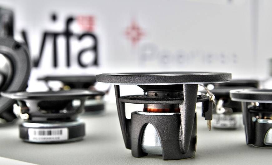 Bild 1: Hier ist der grosszügig hinterlüfteter Korb Vifas neuer NE-Serie gut zu erkennen. Der effektive Neodym-Eisen-Boron Magnet baut zudem recht klein, was die Hinterlüftung ebenfalls begünstigt .