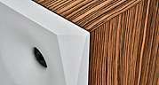 Bild 1: Das Zebranofurnier kontrastiert schön mit dem weissen Beton.