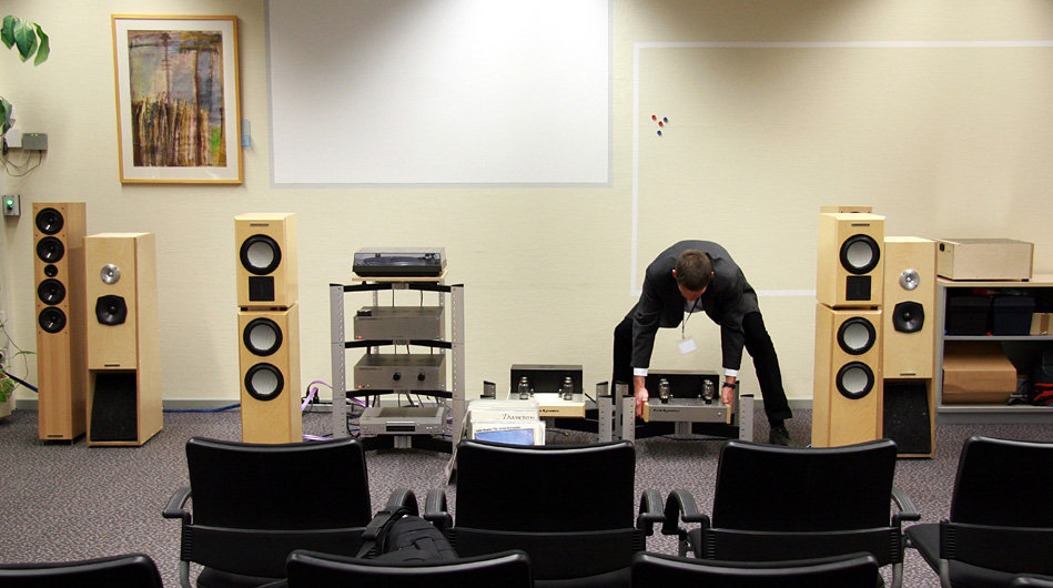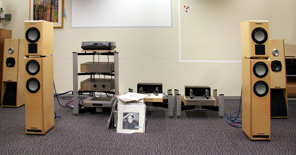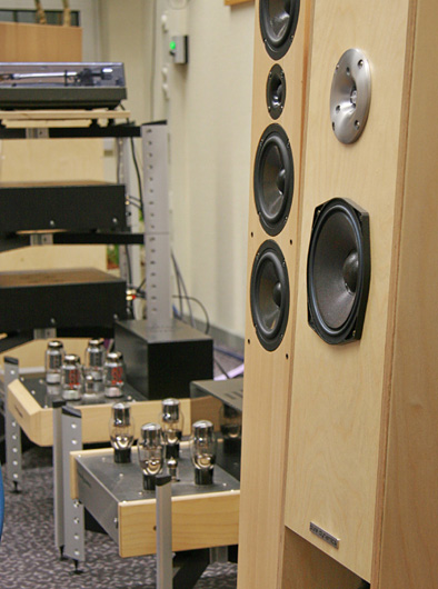 Neben seinen Röhrenverstärkerkreationen stellte Herr Ruppert auch seinen vorzüglich gemachten 2-Wege-Keramix vor. Der gefiel uns insbesondere ohne Subwoofer-Unterstützung in dem Hörraum sehr gut.