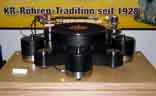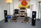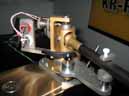 Nach dem Wegbleiben in 2005 war die Rosenheimer Lautsprecherschmiede Audiaz dieses Jahr wieder auf der Highend vertreten und hatte offensichtlich nichts dem Zufall überlassen. So schickten sie eine absolut ausgereizte Version ihres kleinsten Modells - der Eta - an einer ebensolchen Highend-Kette (Bild 1) ins Rennen. Die Etas wurden von den sehr leistungsfähigen und nicht ganz preiswerten KR Mono-Röhrenendstufen angetrieben. Als Digital-Zuspieler diente ein Teac Esoteric Spieler, der recht häufig auf der Messe zu sehen war. Ein echtes Highlight indes war die analoge Quelle (Bild 2): Eine 3-Motoren Version des noch jungen Ruhrpott-Drehers Raven von TW Acustic der mit zwei aussergewöhnlichen und wohl auch sehr seltenen Tonarmen bestückt war. Links im Bild ist in der Seitenansicht ein Grandezza Tonarm von Da Vinci Audio Labs zu sehen. Der Grandezza ist ein exquisit gefertigter, doppelt-kardanisch gelagerter Tonarm mit Diamantspitzenlager aus der Schweiz (s.a. Bild unten rechts). Wirklich gespannt war ich allerdings auf die Vorführung mit dem zweiten Tonarm rechts im Bild. Der unter Insidern bekannte und hochrangig eingestufte Referenz-Arm von Frank Schröder aus Berlin. Gerade unter Selbstbauern ist der Schrödersche Patentarm sehr populär, kann man doch einen nicht gerade günstigen Spitzentonarm (nicht unter 4000 EUR) vermeintlich recht einfach nachbauen ist. Einerseits ist die Patentschrift downloadbar und andererseits ist die Lagerung so simpel wie genial. Anstelle einer kardanischen Lagerung oder einer Einpunktlagerung auf einer Stahlspitze oder einem Rubin o.ä. kommt beim Schröder eine Fadenaufhängung zum Einsatz. Damit der Arm nicht pendelt und zu Dämpfungszwecken steht im Lagerpunkt des Schafts ein kleiner aber sehr starker Neodymmagnet einem zweiten fest montierten Magneten knapp darunter gegenüber - gut zu sehen im Bild unten links. Weitere Details und eine Weiterentwicklung basierend auf dem Schröderlager gibt es demnächst auf meiner Homepage unter Selbstbau zu sehen. Am Holzrohr des Schröders kam der Dynavector XV-1S (Bild Mitte unten) zum Einsatz. Vorverstärkt wurden dessen kleinen Signale von der Röhren-Phonovorstufe Tron Seven (im Bild 1 unter dem Plattenspieler) von Tron Electronics.