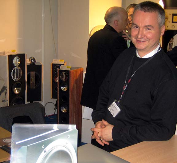 Expolinear ist leider der vierte im Bunde von dem ich berichten muss, dass auf der gesamten Messe keine Vorführug finden zu war. An interessanten Produkten hätte es Expolinear-Chef Jörg Henning-Reinelt (im Bild) indes nicht gemangelt. Seine bezahlbaren Steingehäuse-Lautsprecher (hinten im Bild) mit den exklusiven Treibern von Podszus/Görlich, Swans oder den Bändchensysteme unter eigenem Label nehmen am Markt eine Sonderstellung ein. Derartige bestückte und aufgebaute Lautsprecher bietet meines Wissens nach sonst kein weiterer Hersteller an. Uns Selbstbauer erfreut zudem umso mehr, dass man die Chassis bei Expolinear auch einzeln ordern kann.