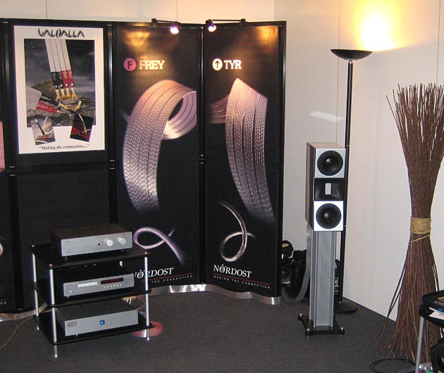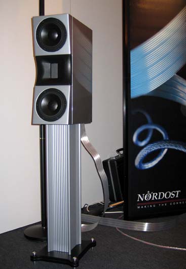 Eher duch Zufall bin ich in den Raum von Nordost Nordost gestolpert - sind mir die zwar guten aber viel zu teuren Kabel doch gut bekannt. Tipp am Rande: Ähnlich gute Verbinder zum Selbermachen gabs von Holer Barske in der Klang+Ton 03/2006, von Manuel Löffler auf seiner Klang-Projekt-Seite oder demnächst auch bauf meiner Seite unter Selbstbau - Silberflachbandkabel. Die guten Geräte von Exposure (Bild 1) alleine hätten mich ebenfalls nicht zu einer Hörsitzung locken können. Die mir unbekannten und meines Wissens nach in Deutschland noch nicht erhältlichen Lautsprecher von eben by Raidho (Bild 1 und 2) hatten mein Interesse geweckt. Versprechen doch gut gemachte 2-Wege-Lautsprecher mit nicht zu grossen Tief-Mitteltontreibern und Flächenstrahler als Hochtöner ein hochaufgelöstes und dynamisches Klangbild frei von Verzerrungen.